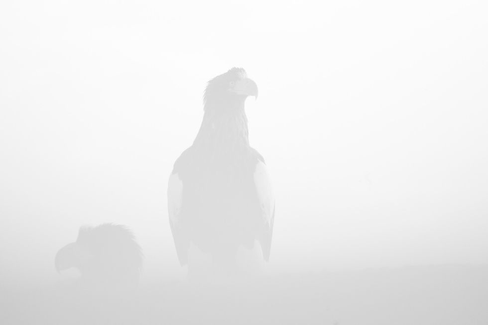 The Steller eagles use these floating ice as a perch while resting between fishing or feasting on their catch. These birds are rather brilliant at fishing but like we have read about the Orcas in the Arctic, have also learnt to leverage humans well. They too tend to follow the commercial fishing boats and as the fishermen throw overboard the unwanted fish, the Steller swoops in for a quick meal.
