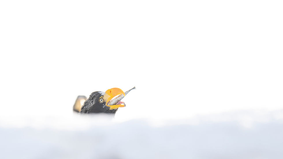 They are not residents of Hokkaido though. They come visiting during winter. Home is the beautiful and remote Kamchatka in Russia. However, in winter, as the sea freezes in Russia and fishing becomes difficult, these birds follow the drift ice as it floats towards Hokkaido.