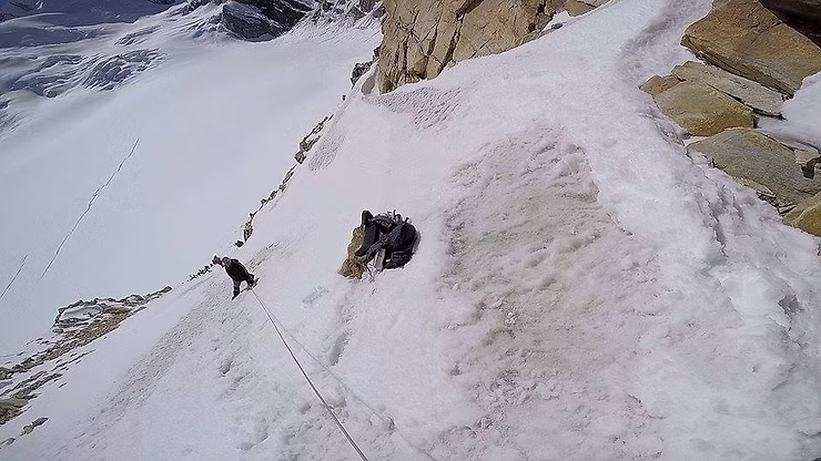 We decide to go for it. First we had to rope up and cross the rest of the glacier. Once that was done, continue our descent this time over moraine.